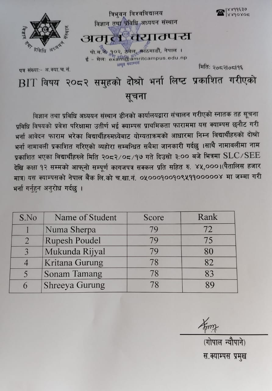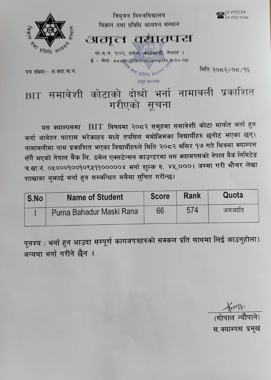 BIT खुला र समावेशी दुबै तर्फको भर्ना सम्बन्धी सूचना।