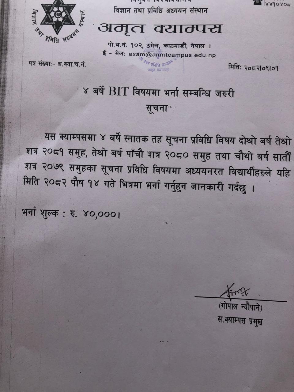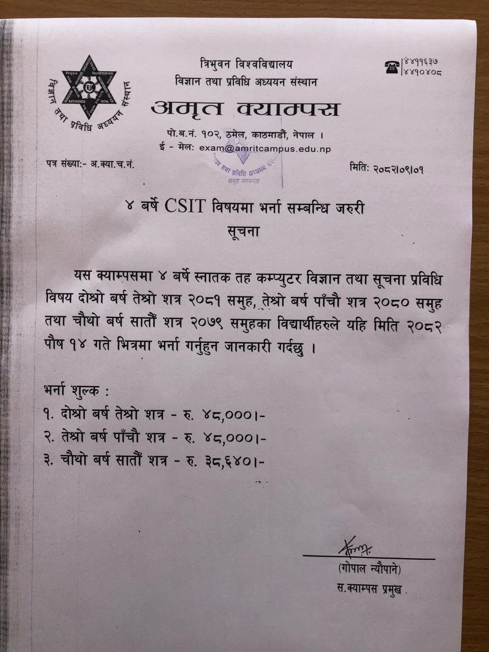 B.Sc.CSIT and BIT admission notice