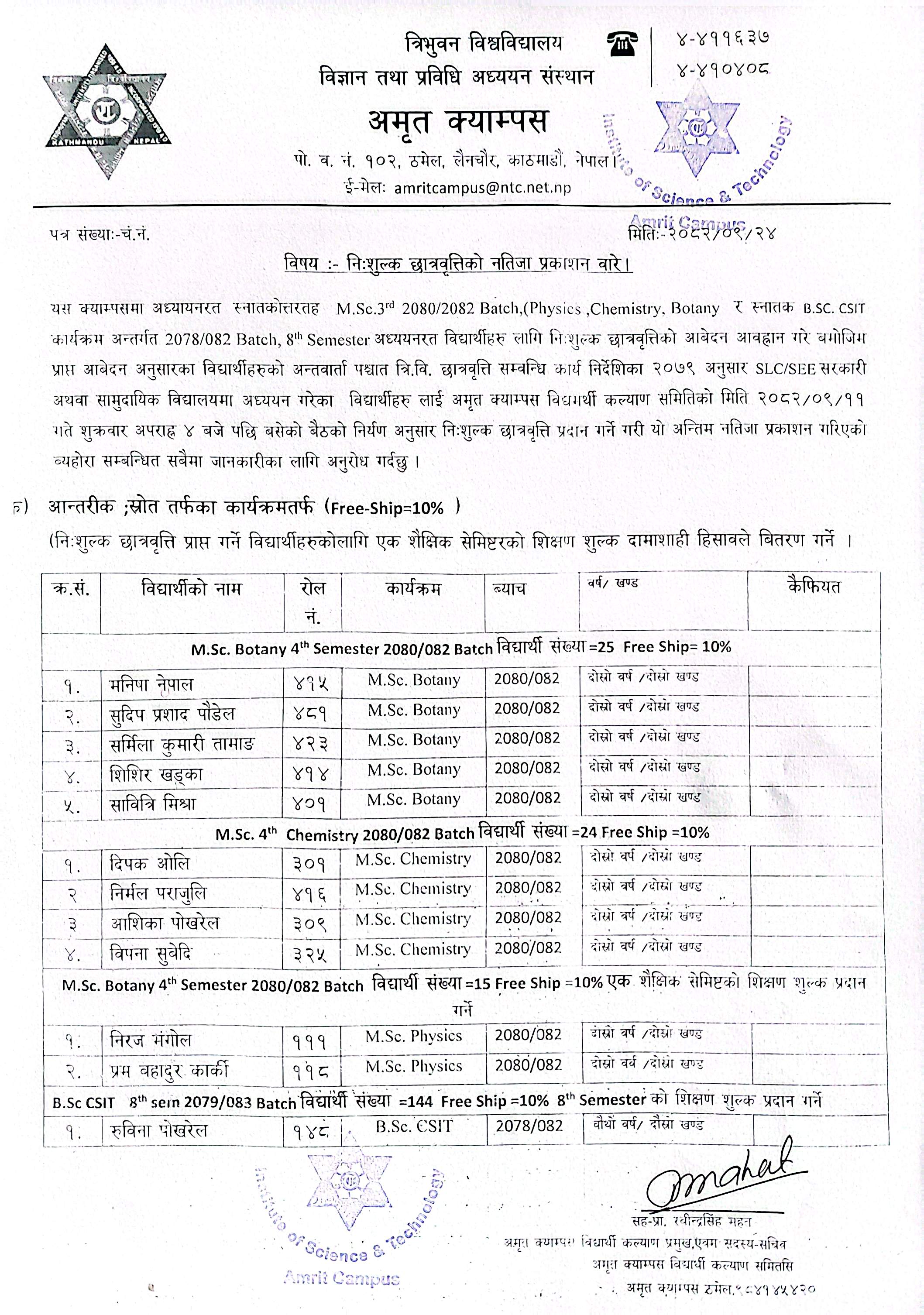 नि: शुल्क छात्रवृत्तिको नतिजा प्रकाशन सम्बन्धी सूचना।
