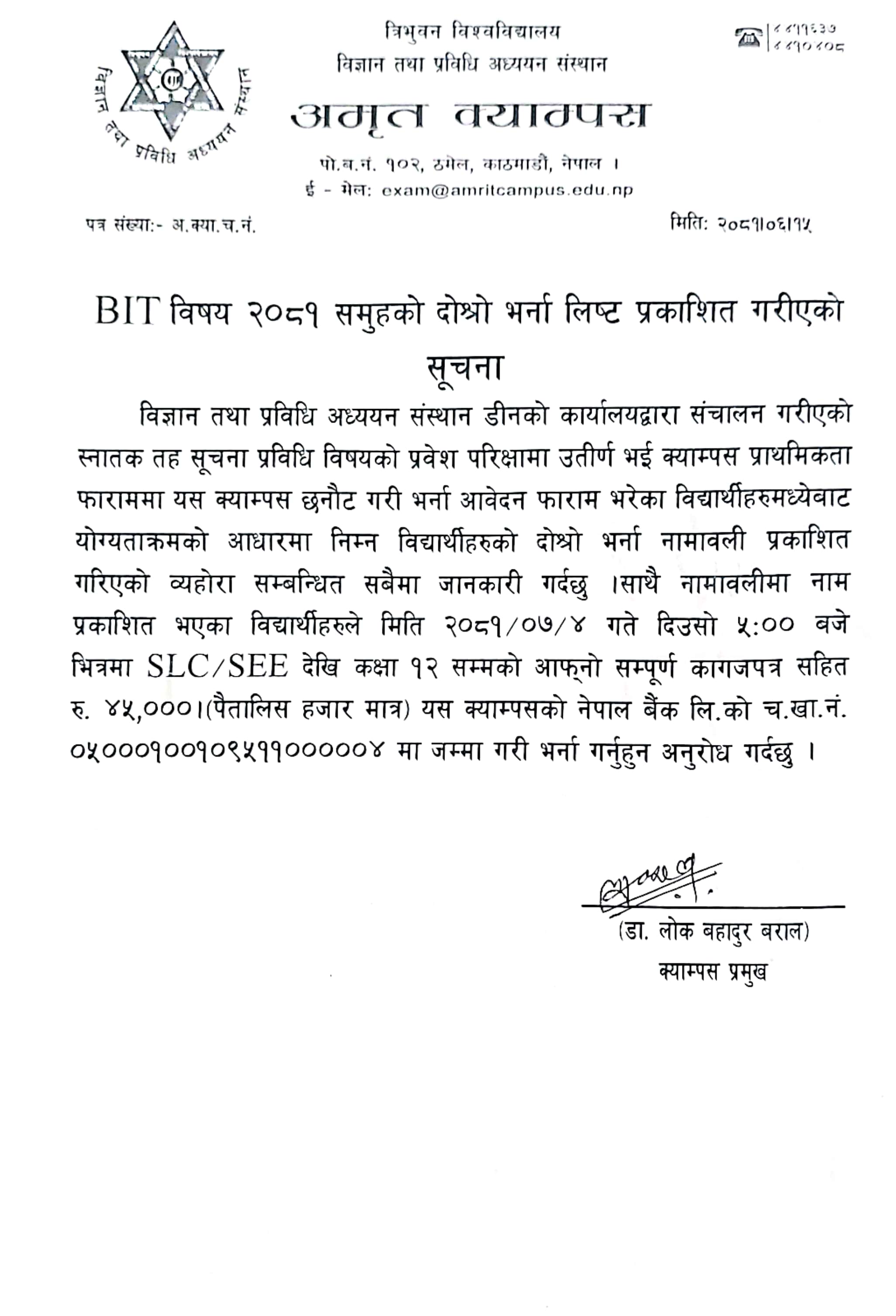 स्नातक तह २०७९ समुहको तेस्रो बर्षमा भर्ना हुने सम्...