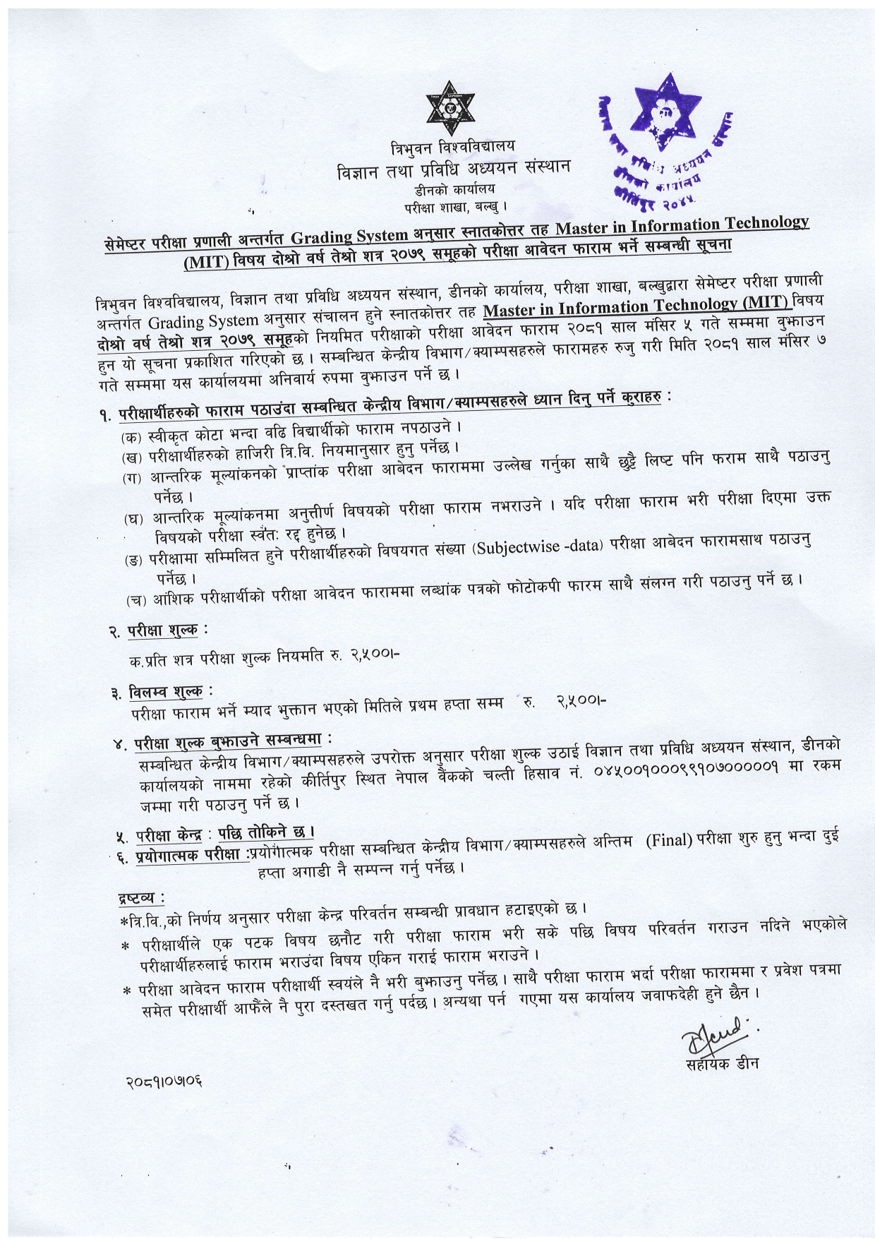 Master in Information Technology (MIT) III Semester-2079 From Fill Up Notice