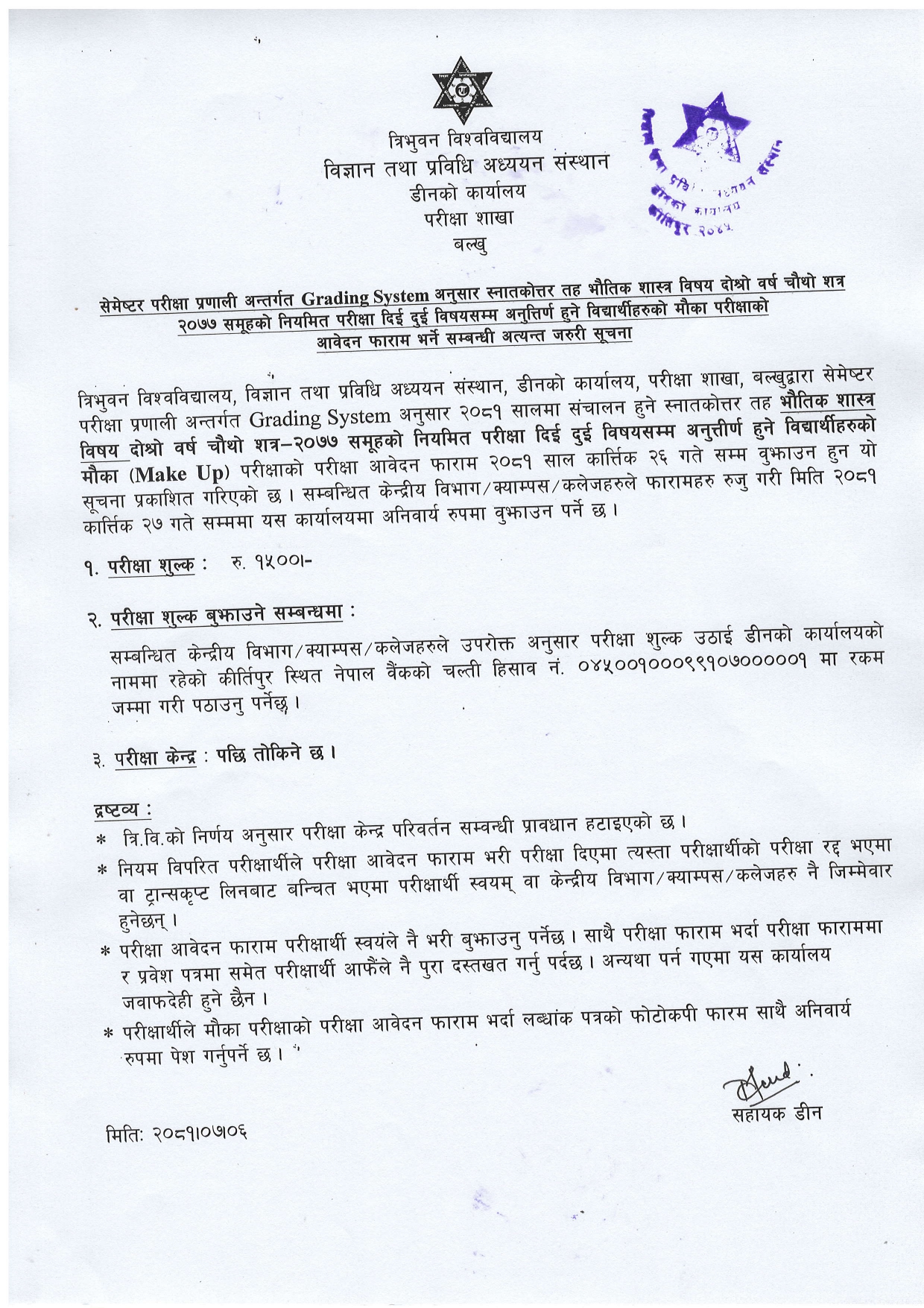 𝐌.𝐒𝐜. 𝐏𝐡𝐲𝐬𝐢𝐜𝐬 बिषय दाेश्राे वर्ष चाैथाे शत्र २०७७ समूहकाे माैका परीक्षा (𝐌𝐚𝐤𝐞 𝐔𝐏) काे अावेदन फारम भर्ने सूचना