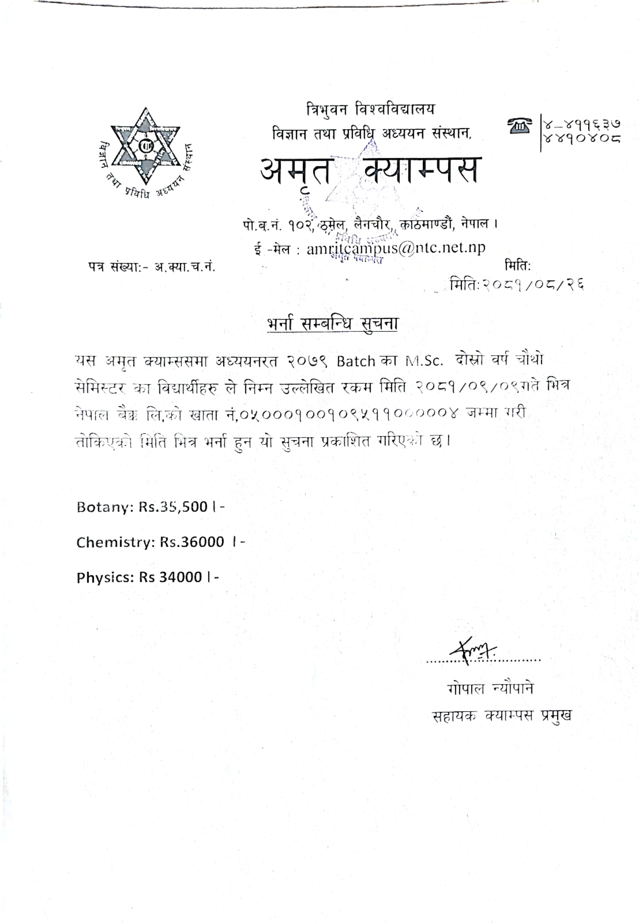 स्नातक तह २०७९ समुहको तेस्रो बर्षमा भर्ना हुने सम्...