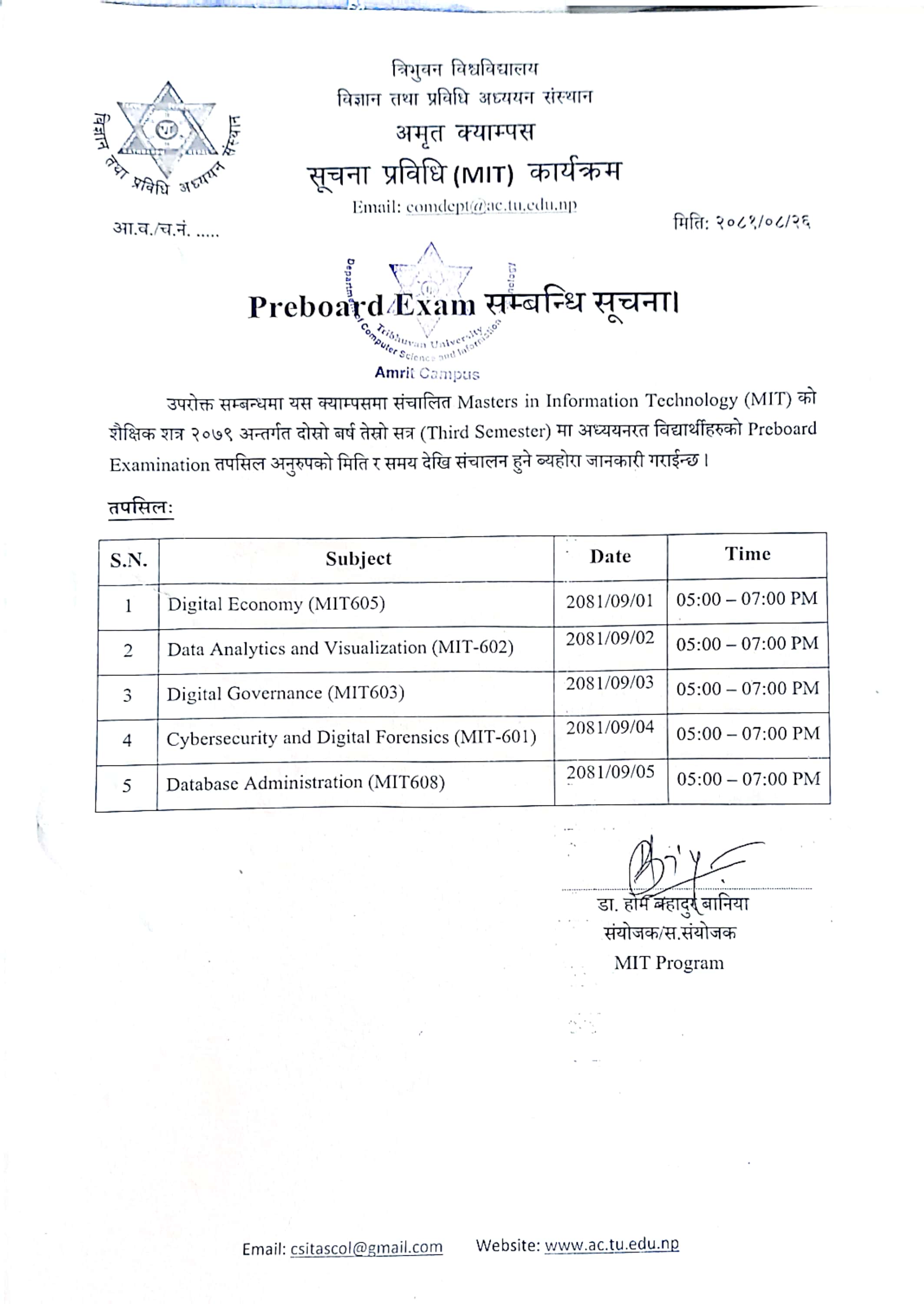 तीन बर्षे स्नातक तह दाेश्राे तथा तश्राे बर्षकाे प्रयाेगात्मक परिक्षाकाे संशाेधित तालिका प्रकाशित गरीएकाे सूचना