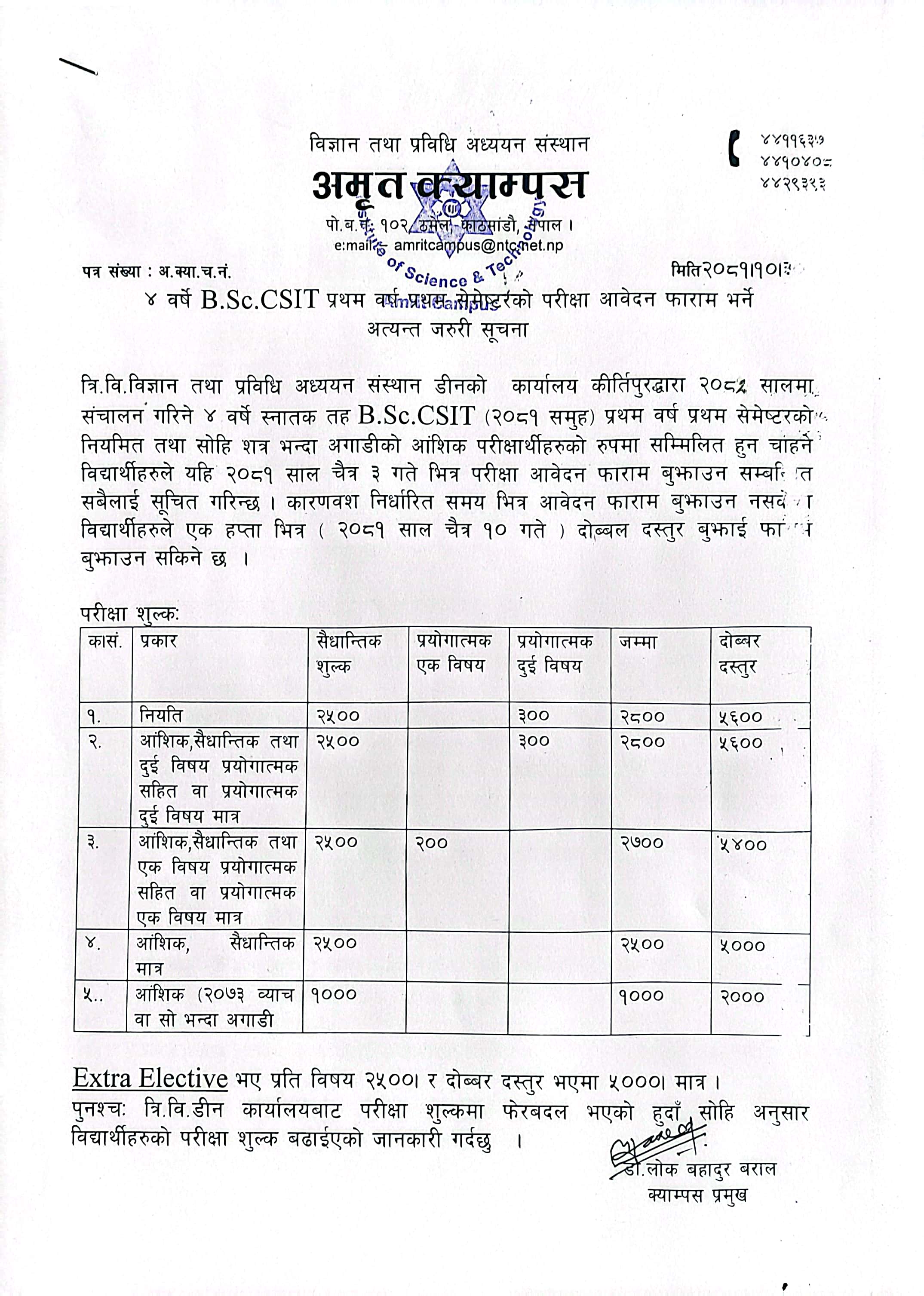 B.Sc.CSIT Batch 2081 First Semester Exam Form Fillup Notice.