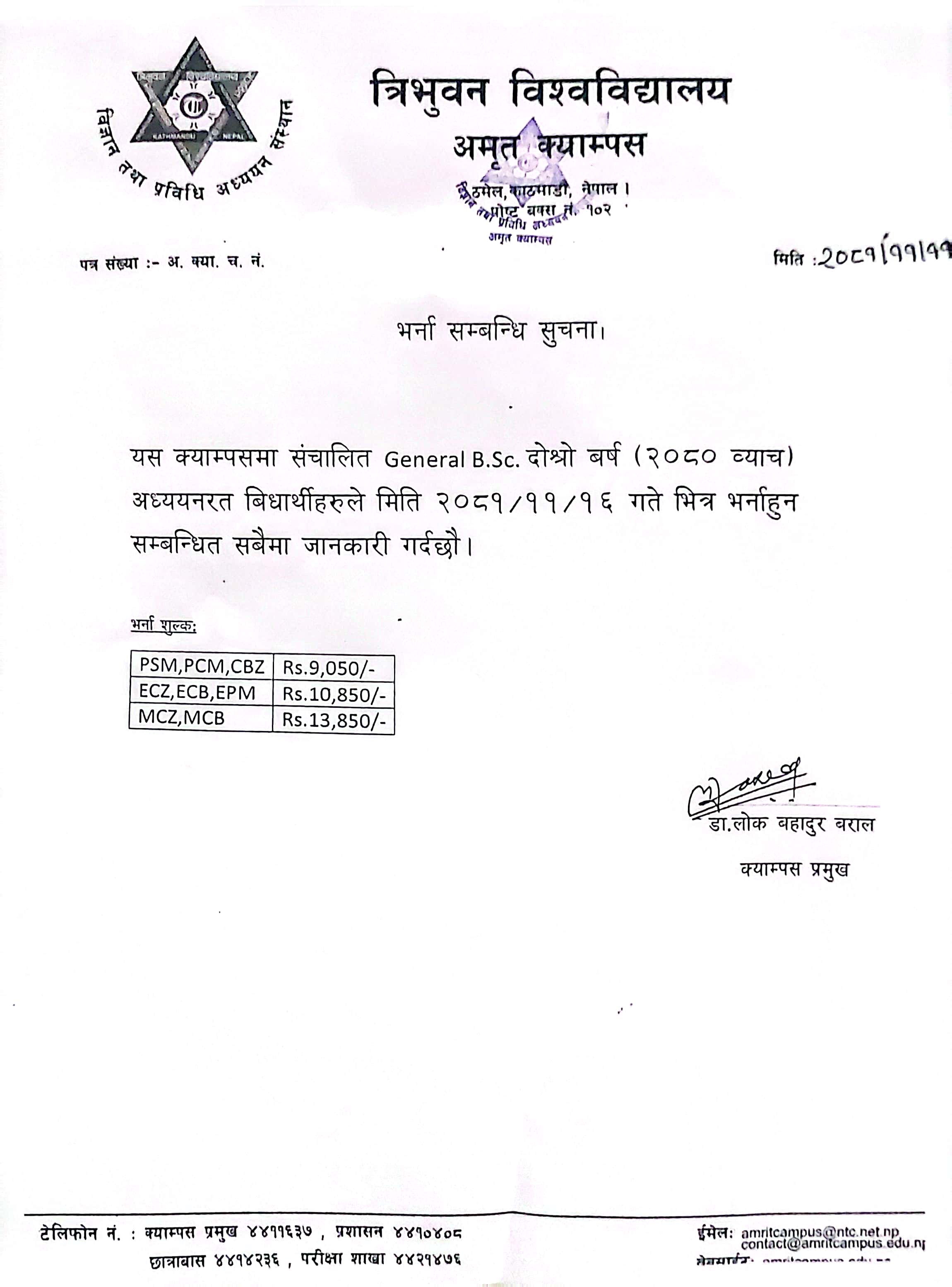 स्नातक तह २०७९ समुहको तेस्रो बर्षमा भर्ना हुने सम्...