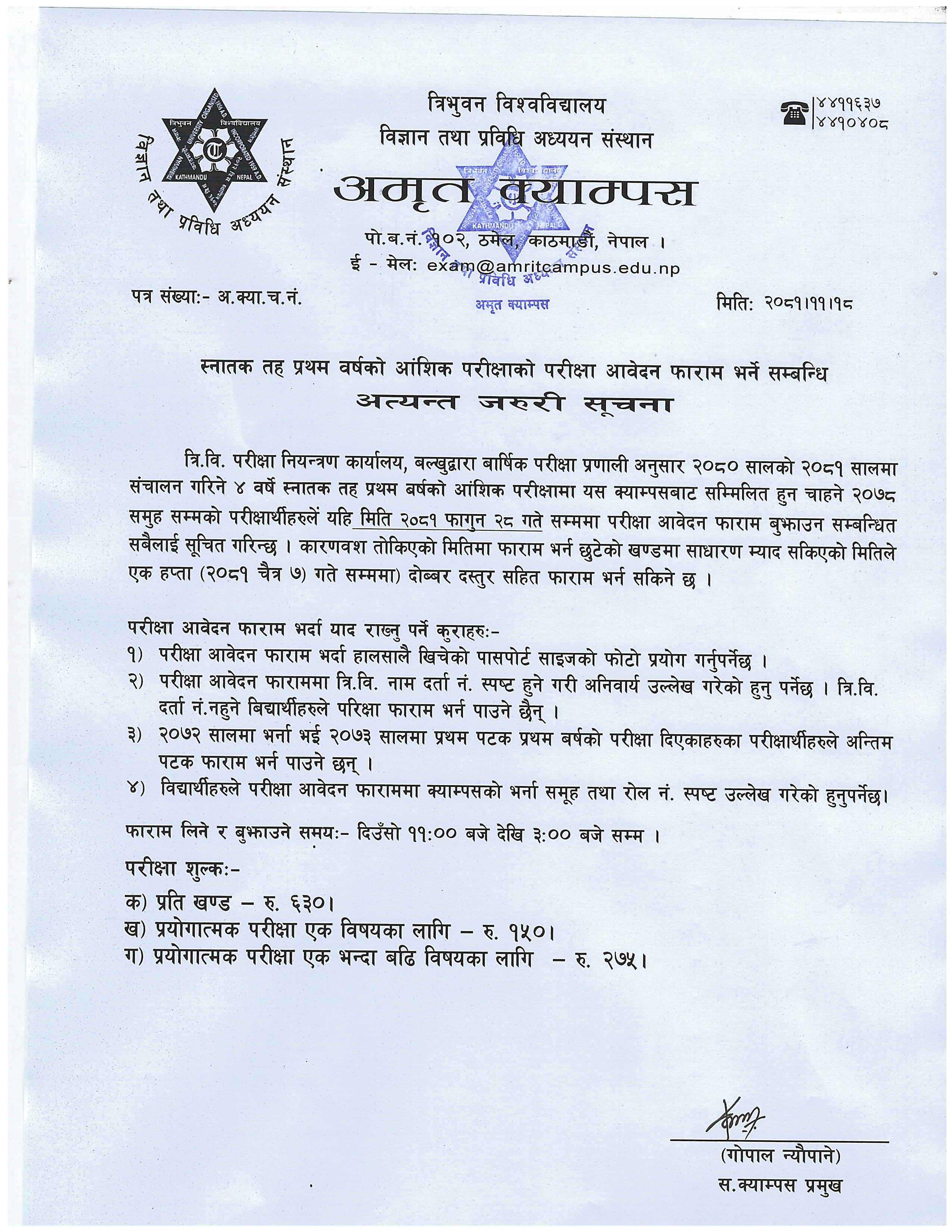 स्नातक तह प्रथम बर्षकाे परीक्षा अावेदन फाराम भर्ने सूचना